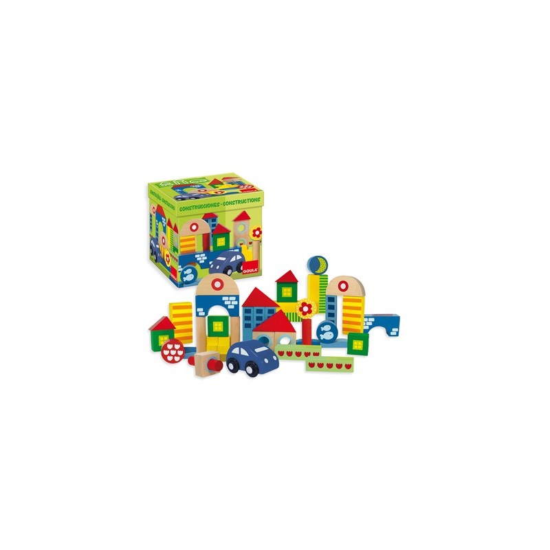 JOGO DE 41 PEÇAS DE ARQUITETURA DE MADEIRA MARCADAS PELOS DOIS LADOS, INCLUI UM CARRO COM RODAS. FORMAS ORIGINAIS E CORES MUITO VIVAS. INCLUI EMBALAGEM DE CARTÃO PARA GUARDAR AS PEÇAS. A PARTIR DE 1 ANO. 1 OU MAIS JOGADORES. MEDIDAS: 19 X 18,5 X 18,5