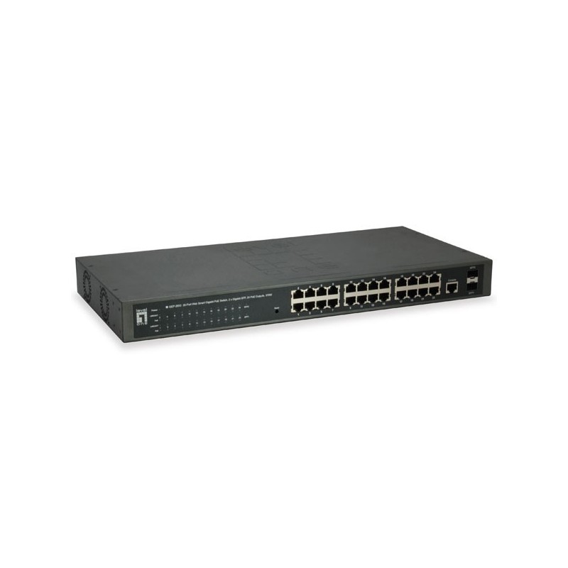 24 Gigabit Ethernet ports and 2 Gigabit SFP slotsIEEE 802.3af/at PoE compliant to simplify deployment and installationTotal PoE power budget: 370W, up to 30W per portSupports port-based VLAN, IEEE 802.1Q VLAN Tagging and GVRPIEEE 802.1d/w/s Spanning Tree