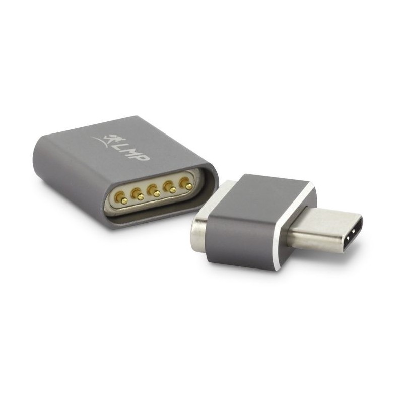 Adaptador USB-C (M/F) para ligar na porta de carregamento de um Mac/PC, e do outro lado a um cabo USB-C normal. Se o cabo for inadvertidamente ''puxado'', a parte magnética solta-se, evitando que o portátil ou computador seja arrastado e caia ao chão...