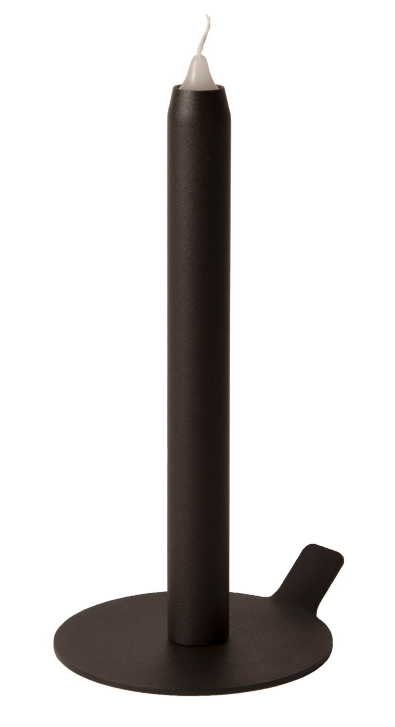 Suporte para velas, são 2 peças metálicas que aderem magneticamente uma à outra: uma base que apara os pingos de cera e serve de suporte, e um cilindro vertical onde se introduz a vela. Este tubo tem uma mola interna que mantém a vela sempre no topo à me