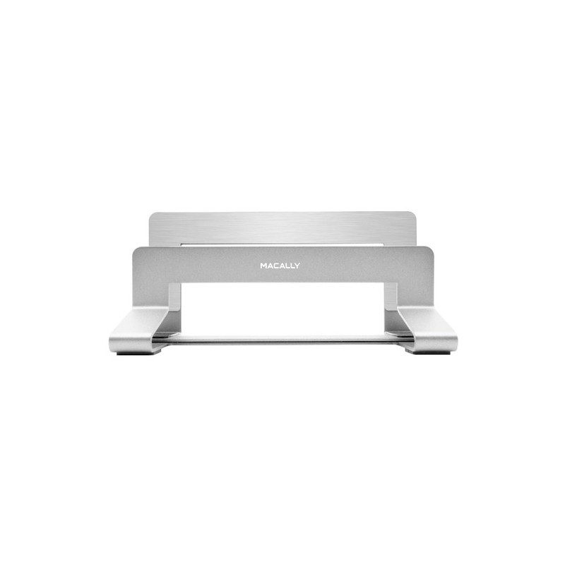Stand vertical em alumínio para Macbook, Macbook Air, Macbook Pro ou qualquer outro Notebook com 1.6 cm a 3 cm de espessura. O portátil fica fechado, na vertical e com todas as portas acessíveis, poupando espaço na secretária.