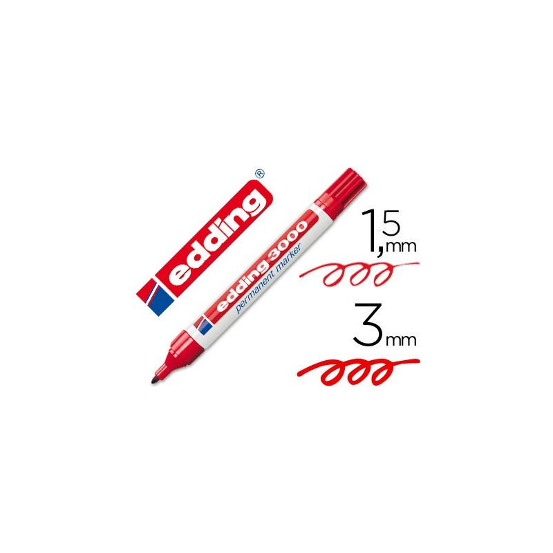 MARCADOR EDDING 3000 VERMELHO PERMANENTE-PONTA REDONDA 3 MM