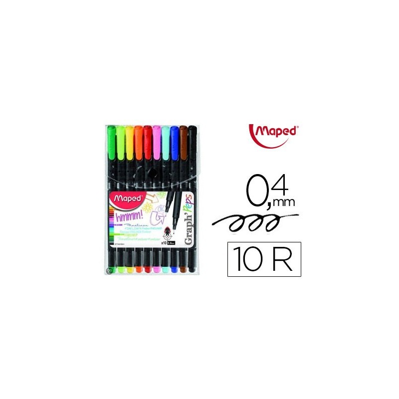 Marcador de ponta fina de fibra de alta qualidade com reforço metálico. Forma triangular que permite uma pega ótima. Ideal para escrever e desenhar. Ponta de 0,4 mm. Ponta ultrafina. Traço de 0,4 mm. Cores sortidas.