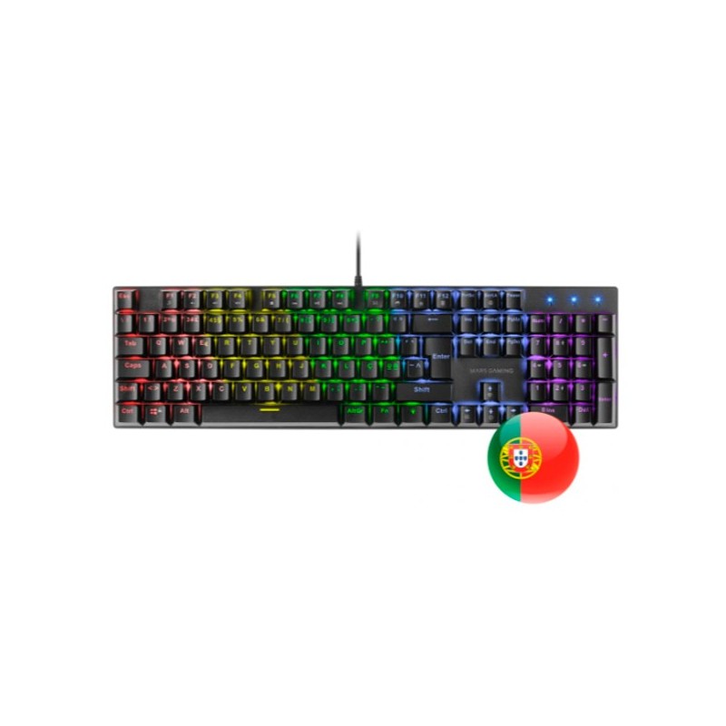 MARS GAMING TECLADO MK422 MECHANICAL ANTI-DUST RED FRGB BLACK Mars Gaming MK422. Forma do factor do teclado: Tamanho completo (100%), Interface de dispositivo: USB, Interruptor do teclado: Interruptor de chave mecânico. Tipo de retroiluminação: LED RGB.