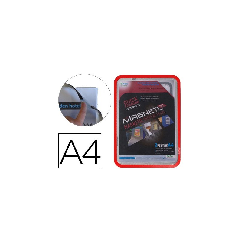 PRÁTICO SISTEMA COM IMAN, RÁPIDO INTERCÂMBIO DE DOCUMENTOS. FABRICADO EMPVC 300 MICRONS E 4 BANDAS MAGNÉTICAS NO DORSO PARA ADERÊNCIA EM QUALQUERSUPERFÍCIE METÁLICA. PACK DE 2 MOLDURAS. Pág Catálogo:508
