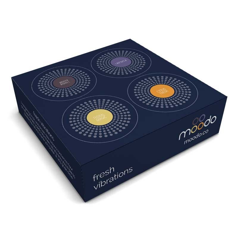 Conjunto de 4 cápsulas ''Fresh Vibrations'': inclui 1 de cada de ''Wood Royale'', ''Lavender'', ''Floral Magic'' e ''Cirtus Fresh''. Cada cápsula tem capacidade para 60 hrs de funcionamento; como o aroma final é o resultado de um mix de 4 cápsulas, na re