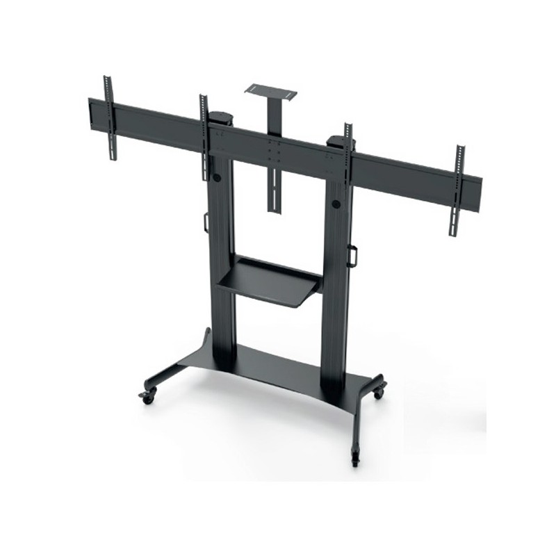 MONTAGEM DE CARRINHO 2 DISPLAYS50-75"50"-75"CABO11 MAX.COR PRETAALTURA AJUSTÁVEL: 300 MMALTURA DA PRATELEIRA DA CÂMERA: MAX 2190 MMRODAS DE FREIO DE ALTA QUALIDADE