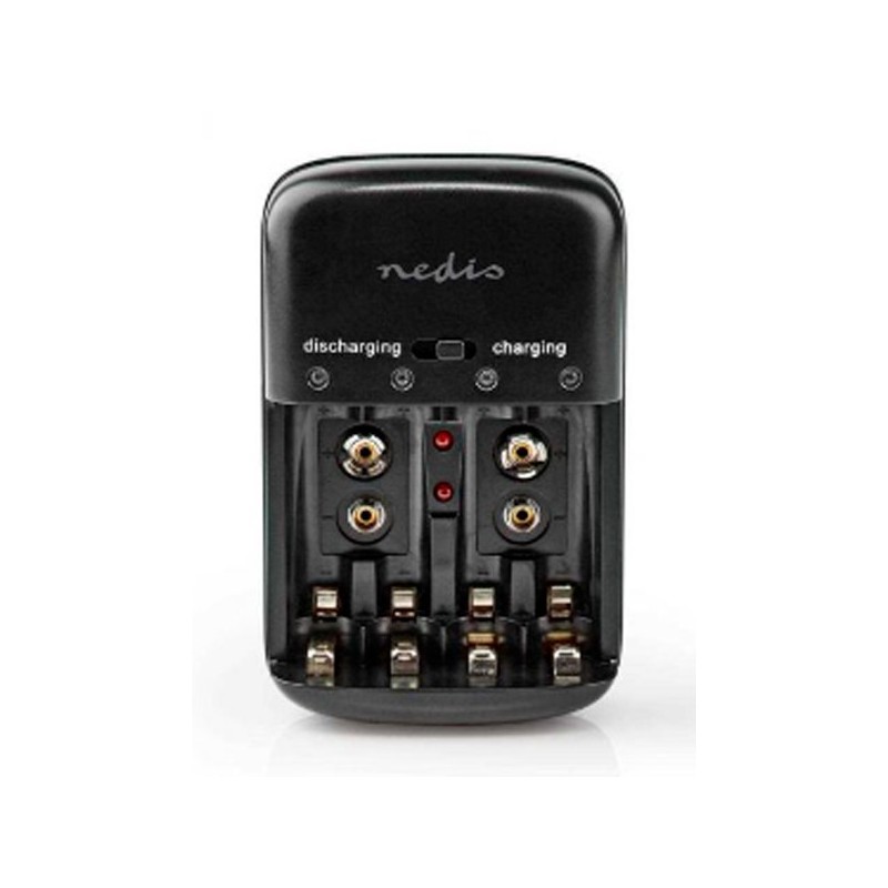 • Adequado para baterias Ni-MH / Ni-CD• Carrega baterias AA 3000 mAh em 15 horas, baterias AAA 1000 mAh em 20 horas e baterias 9 V 350 mAh em 24 horas• LED indica carregamento/descarregamento/totalmente carregado