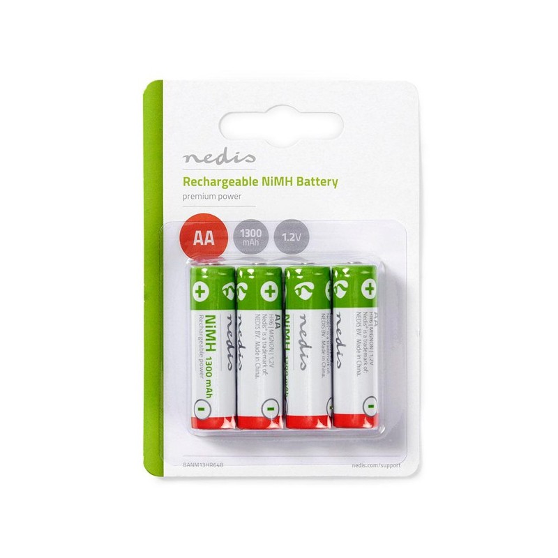 NEDIS PILHAS RECARREGÁVEIS AA 1.2V 1300 mAh 4 UNDS