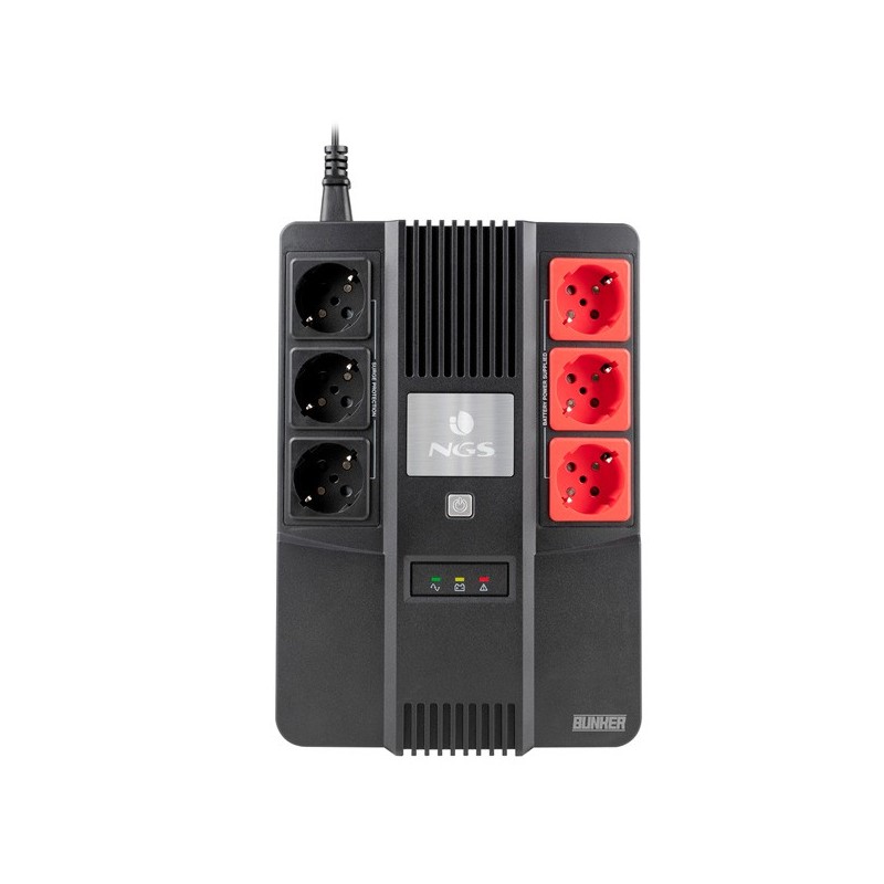 UPS 600 VA (360 W) fiável com bateria 12 V/7Adequada para alimentar e proteger os seus dispositivos eletrónicos, neutralizando os efeitos nocivos das sobrecargas de rede e quebras de tensão.Equipada com 6 tomadas (tomadas Schuko)Todas as tomadas protegid