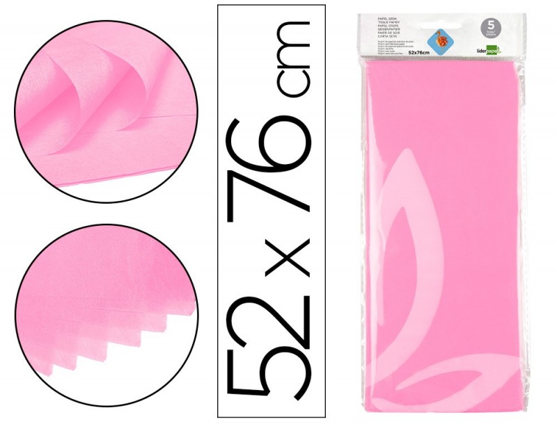 PAPEL SEDA LIDERPAPEL. 50 X 76 CM. 18 GRS/M2. ROSA