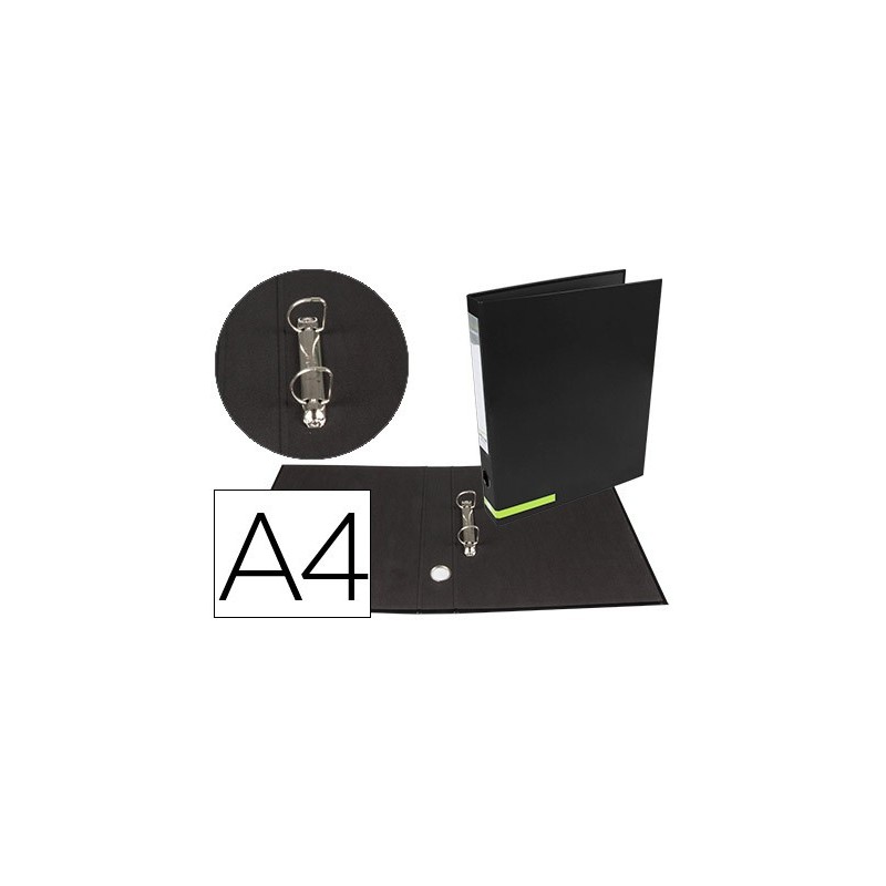 Pasta fabricada em cartão forrado de 1,75 mm de espessura. Papel estucado brilho de 115 g/m2. Óculo e porta etiqueta. Com 2 anéis mistos de 25 mm. Formato Din A4. Lombada de: 45 mm.