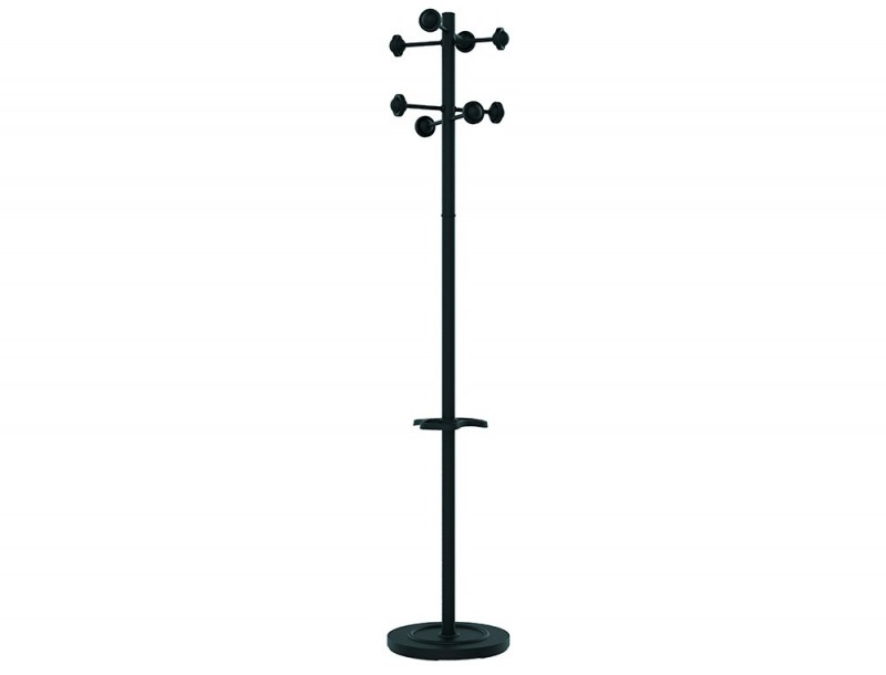 Cabide fabricado em aço. Com 8 suportes redondos para não danificar as roupas. A parte superior giratória permite um fácil acesso a todas as roupas. Também conta com porta guarda chuvas ajustável em altura com capacidade para 9 guarda chuvas. Base de 6 k