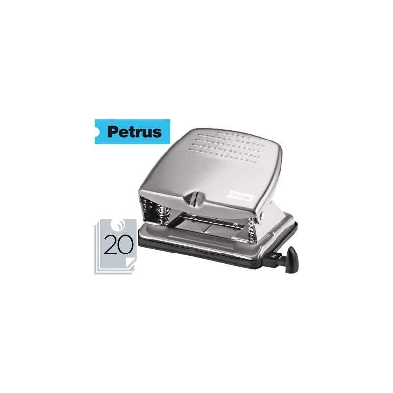 Metálico pintado, ideal para o uso em escritório. Com capacidade para perfurar 20 folhas. Com régua para alinhar o papel. Agora com punções mais afiados que permitem uma perfuração mais fácil. Além disso, incorporou-se uma nova régua que permite um ajust
