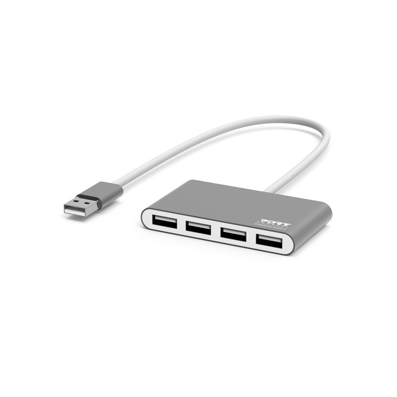 Port Designs 900120. Interface do host: USB 2.0, Interfaces de hub: USB 2.0, Comprimento do cabo: 0,12 m. Velocidade real de transferência: 480 Mbit/s. Tipo de fonte de alimentação: USB. Cor da caixa: Cinzento, Branco, Material: Acrilonitrila butadieno e