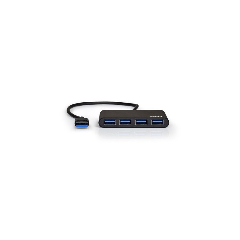 Port Designs 900121. Interface do host: USB 3.0 (3.1 Gen 1) Type-A, Interfaces de hub: USB 3.0 (3.1 Gen 1) Type-A, Comprimento do cabo: 0,45 m. Velocidade real de transferência: 5000 Mbit/s. Tipo de fonte de alimentação: USB. Cor da caixa: Cinzento, Mate