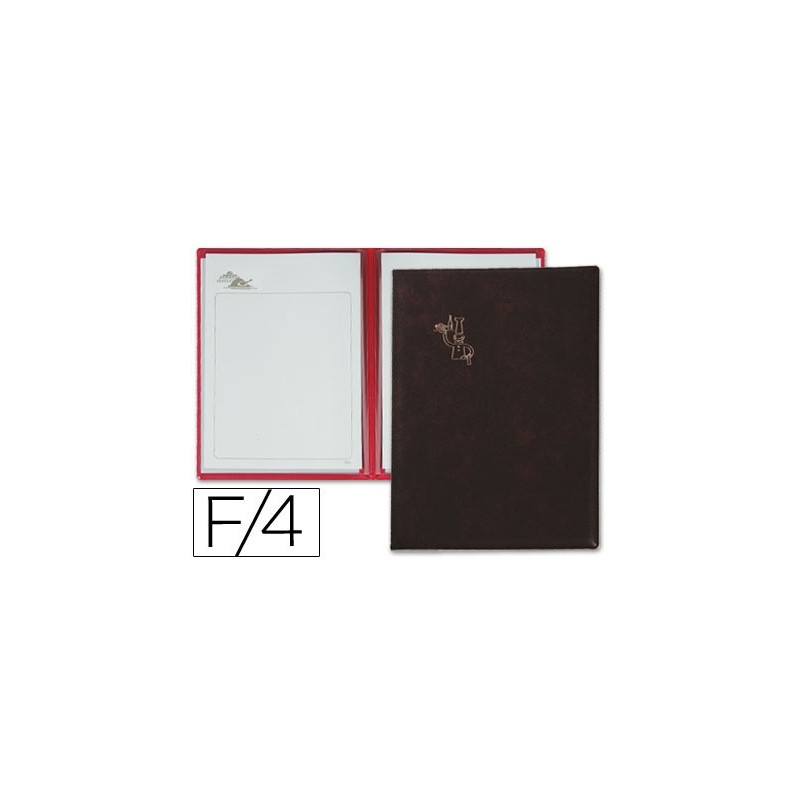 Ideal para estabelecimentos de hotelaria. Fabricada em imitação de pele com quatro bolsas transparentes provida de lâminas litografadas. Medidas: 315 x 230 x 10 mm.