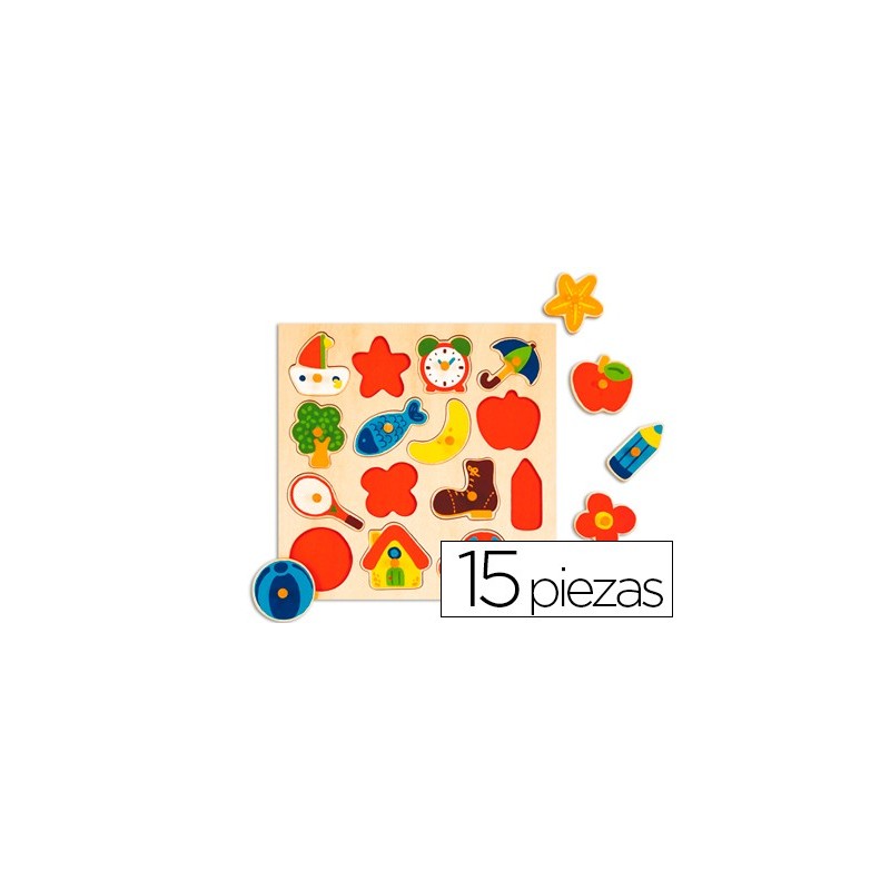 ENCAIXE DE 15 PECAS. ILUSTRACOES DE CORES VISTOSAS. FUNDO DE UMA COR. COLOCA AS PECAS AJUDADA DE A SILHUETA. A PARTIR DE 1 ANO. 1 OU MAIS JOGADORES. MEDIDAS: 28 X 28 X 2,5 CM.