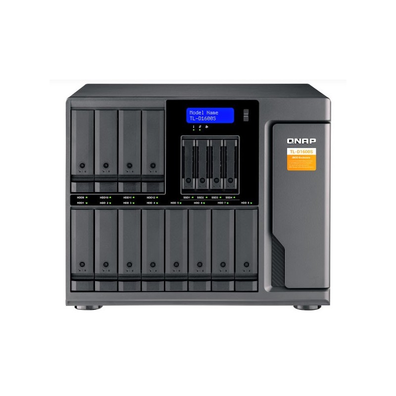 QNAP TL-D1600S. Tipo de produto: Compartimento HDD/SSD. Quantidade de armazenamento de drives compatíveis: 16, Tamanho de armazenamento de drive: 2.5/3.5", Interfaces de armazenamento suportadas: Serial ATA II, Serial ATA III. Taxa de transferência de da