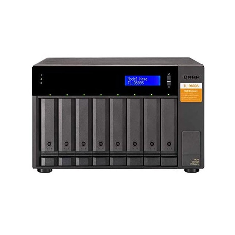 QNAP TL-D800S. Tipo de produto: Compartimento HDD/SSD. Quantidade de armazenamento de drives compatíveis: 8, Tamanho de armazenamento de drive: 2.5/3.5", Interfaces de armazenamento suportadas: Serial ATA II, Serial ATA III. Taxa de transferência de dado