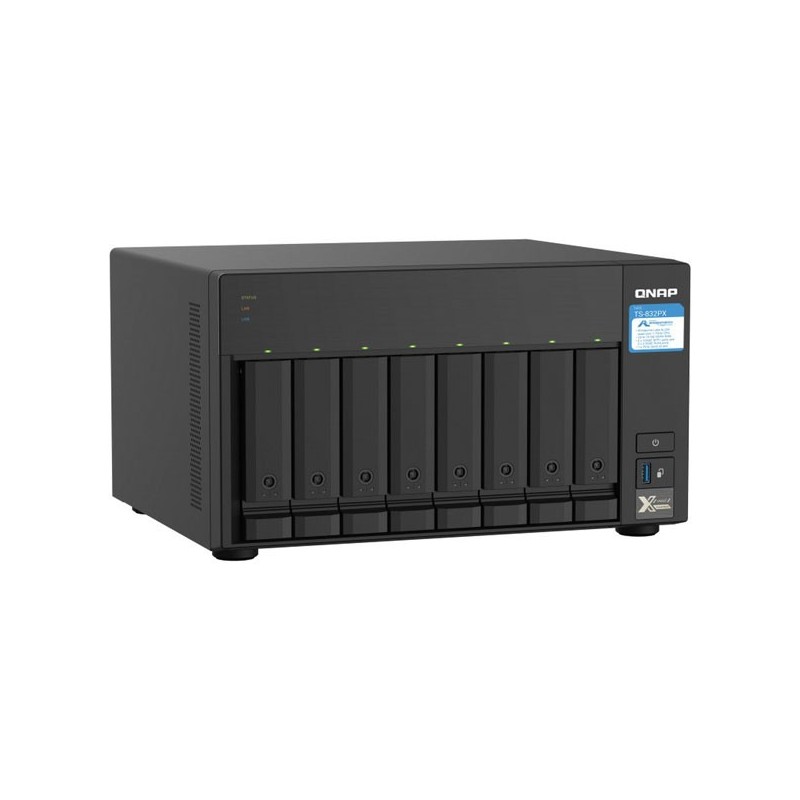 QNAP TS-832PX. Tipo de unidade de armazenamento instalada: HDD, Tipos de unidade de armazenamento suportados: HDD & SSD, Interface de armazenamanento de drive: Serial ATA III. Família de processador: Annapurna Labs, Fabricante do processador: Annapurna L