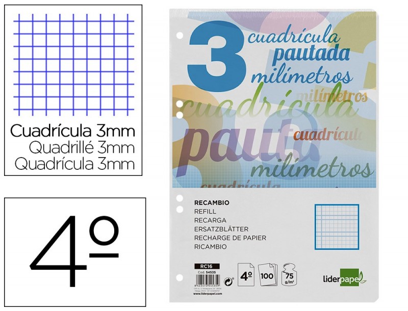 fiber_manual_record Adicionar à Wishlist Avaliação(0) RECARGA LIDERPAPEL QUARTO 100 F 6TC-06 QUADRICULADO 3 MM 6 F 2,23 €1.81 s/Iva.Preço
