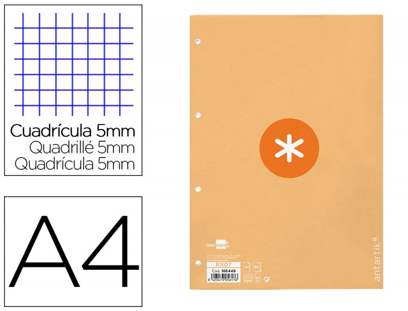fiber_manual_record Adicionar à Wishlist Avaliação(0) RECARGA COLADA LIDERPAPEL ANTARTIK QUADRICULA 5MM DIN A4 80 4,13 €3.36 s/Iva.Preço