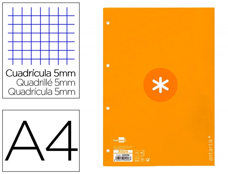 fiber_manual_record Adicionar à Wishlist Avaliação(0) RECARGA COLADA LIDERPAPEL ANTARTIK QUADRICULA DE 5MM DIN A4 3,63 €2.95 s/Iva.Preço