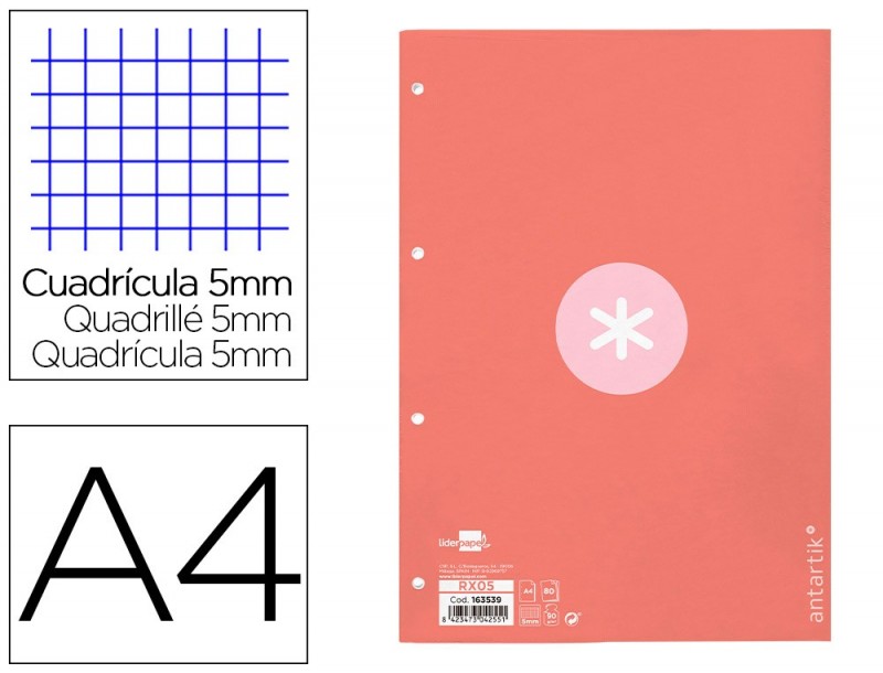 fiber_manual_record Adicionar à Wishlist Avaliação(0) RECARGA COLADA LIDERPAPEL ANTARTIK QUADRICULA DE 5MM DIN A4 3,63 €2.95 s/Iva.Preço