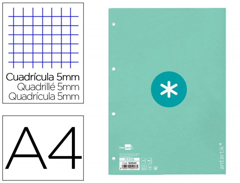 fiber_manual_record Adicionar à Wishlist Avaliação(0) RECARGA COLADA LIDERPAPEL ANTARTIK QUADRICULA 5MM DIN A4 80 4,13 €3.36 s/Iva.Preço