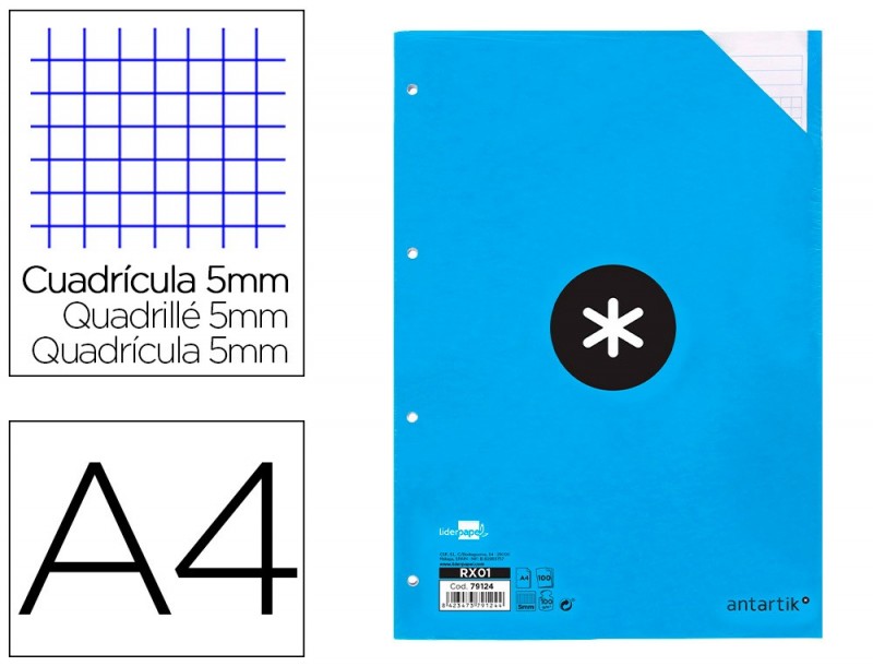 Recarga de papel extra branco de 100 g/m² que se distingue pela sua suavidade e brancura. Torna a escrita mais fluída. 100 folhas. Quadricula de 5 mm. 4 furos. Bandas de 5 cores. Formato Din A4.