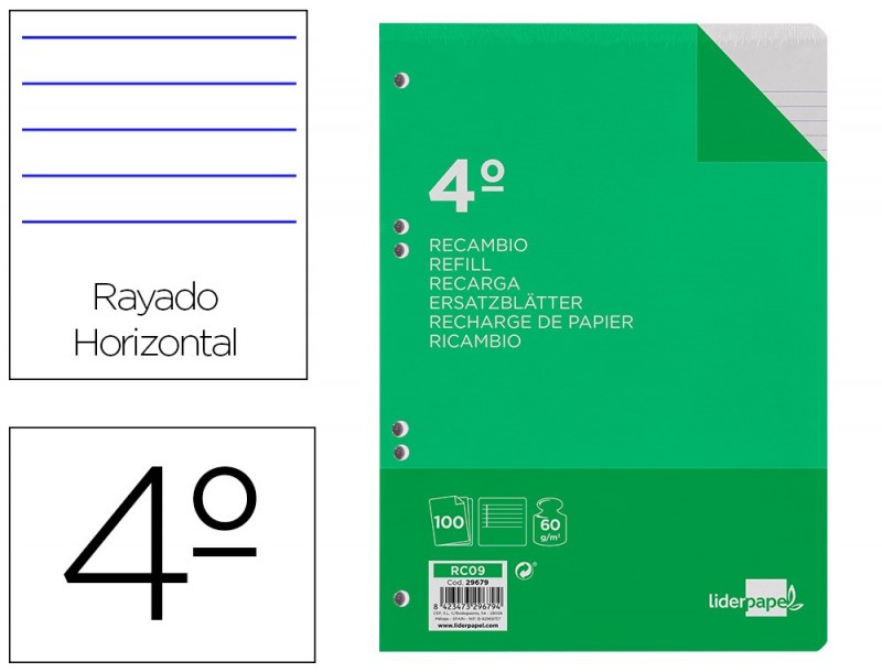 fiber_manual_record Adicionar à Wishlist Avaliação(0) RECARGA LIDERPAPEL FOLIO 100 F 16TF-02 1 RAYA HORIZONTAL 16 2,93 €2.38 s/Iva.Preço