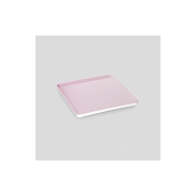 Tabuleiro em melamine com dimensões 160 x 160 x 13 mm. Cumpre os requisitos de segurança para contacto com comida, mas pode ser usado em múltiplos ambientes e funções.