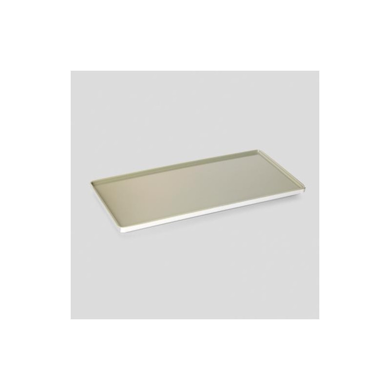 Tabuleiro em melamine com dimensões 321 x 160 x 13 mm. Cumpre os requisitos de segurança para contacto com comida, mas pode ser usado em múltiplos ambientes e funções.