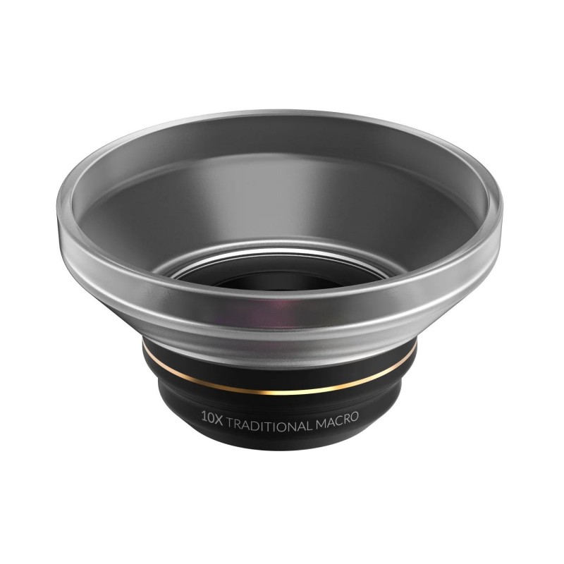 Lente em vidro fluorite, com ampliação 10x e zoom óptico 25x, distância focal mínima 10-15mm. Pesa 36.6g, profundidade 34.8mm, tem encaixe M12 x P0.75. Permite ampliar pormenores, revelando detalhes dificilmente visíveis a olho nú. Pode-se usar com qualq