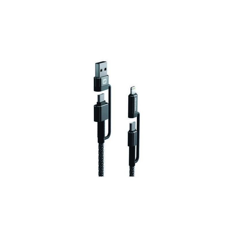 Cabo USB-C para USB-C com estrutura interna em Kevlar 3A/60W. Inclui pontas extra USB-A e Lightning, tornando-o extramente versátil para qualquer tipo de ligação a smartphones ou outros equipamentos.