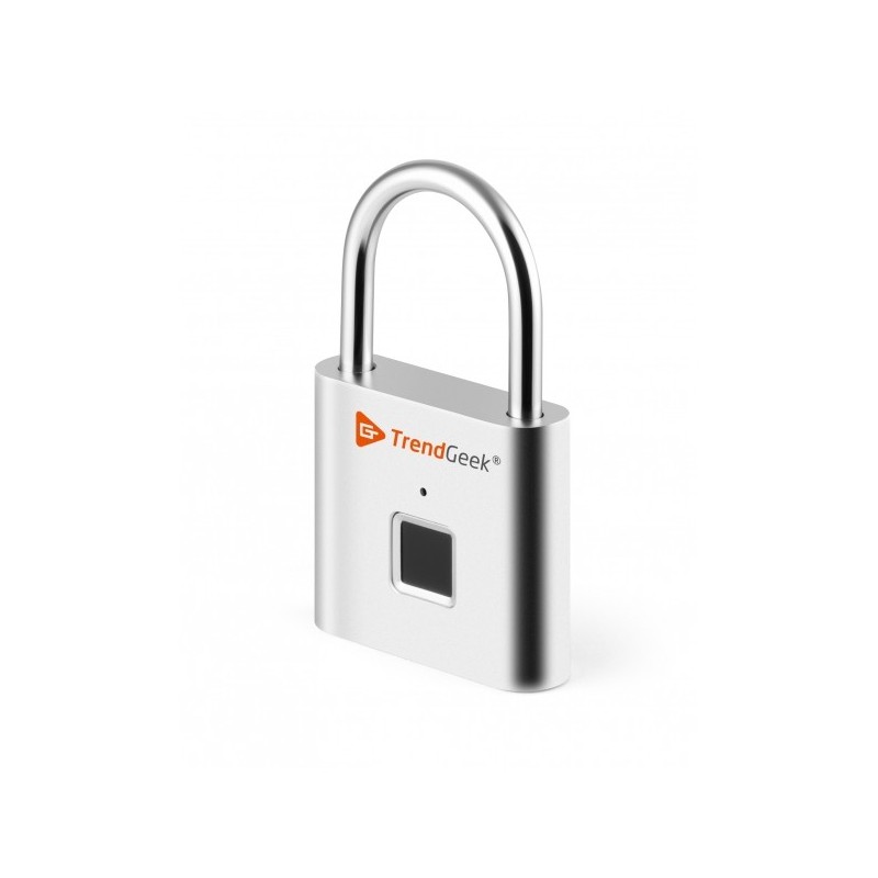 Cadeado que abre mediante introdução de impressão digital de até 10 dedos. Tem uma luz indicadora do estado de carga da bateria interna, que é carregável por USB com capacidade para até 2000 desbloqueamentos, inclui cabo.