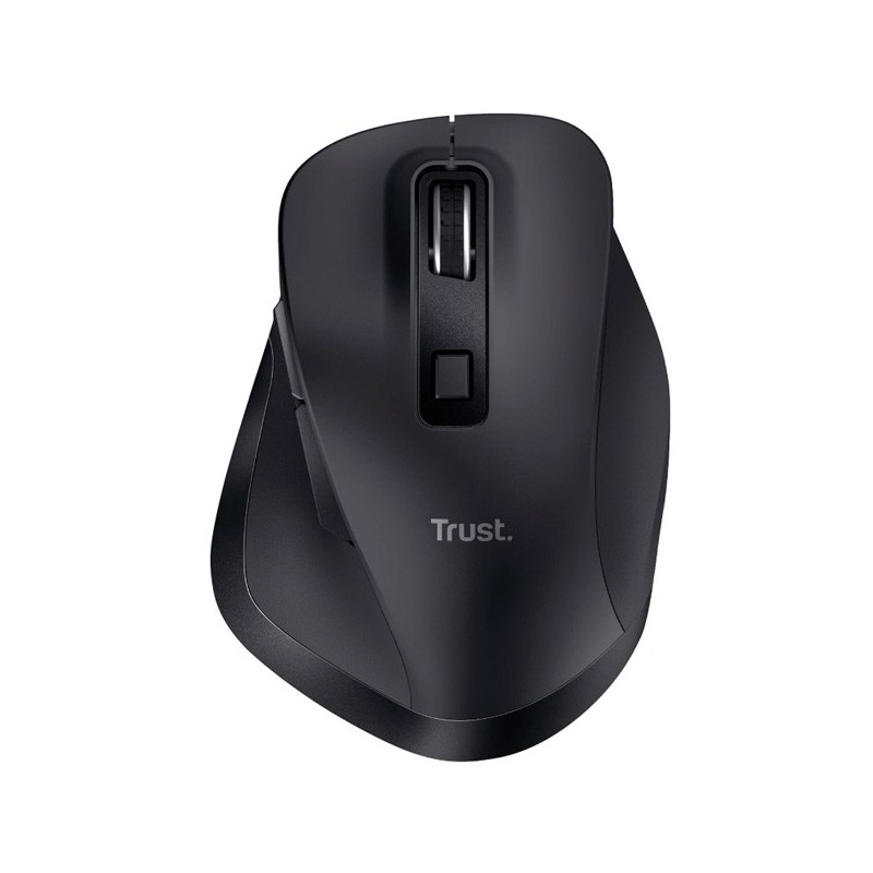 Trust Fyda. Forma: Mão direita. Tecnologia de detecção de movimento: Ótico, Interface de dispositivo: RF Wireless + USB Type-A, Resolução do movimento: 2400 DPI, Tipo de botões: Botões premidos, Número de botões: 6, Tipo de scroll (deslocamento): Roda. F
