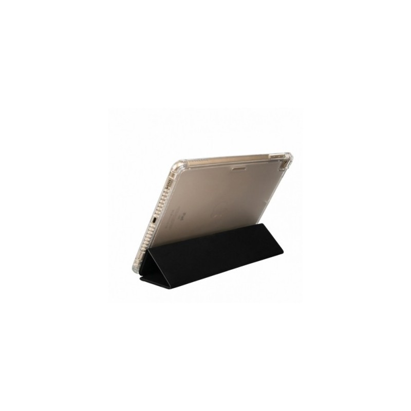Capa para iPad 10.2'' (7th e 8th generation) com traseira em TPU transparente que se pode separar do conjunto. Tem funcionalidade de stand, orifício na traseira para a câmara, magnets (on/off), fecho magnético, e ranhura para caneta.
