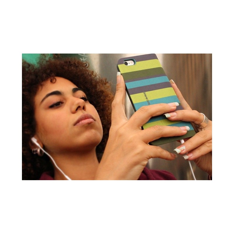 Capa para iPhone 6/6s em cabedal sintético, zona de encaixe em policarbonato e interior revestido a microfibra. Tem ranhuras para colocar cartões de crédito e funcionalidade de stand.