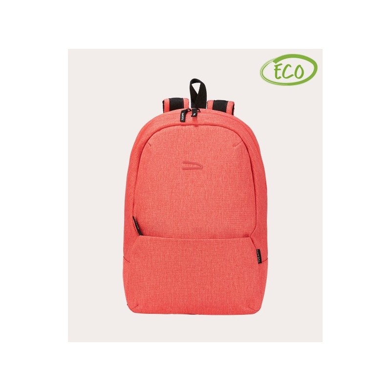 Mochila em material fabricado com plástico reciclado. Tem um compartimento interior para portáteis até 14" e outro para tablet, fita trolley na traseira, e vários outros compartimentos interiores e exteriores.