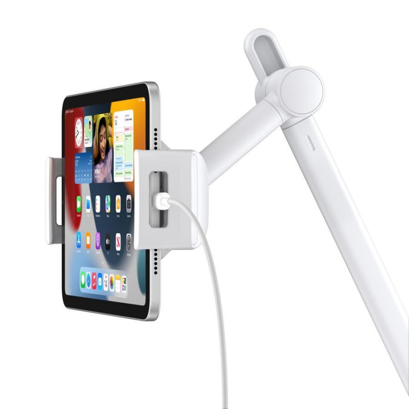 Stand metálico de chão para tablet e iPads. Extremamente robusto, pesa 4.5 Kg e aguenta com o peso de qualquer tablet, desde um iPad mini até 12.9. Tem altura ajustável de 1 até 1.5m. Use-o para montar um tablet com equipamento de exercício, como um segu