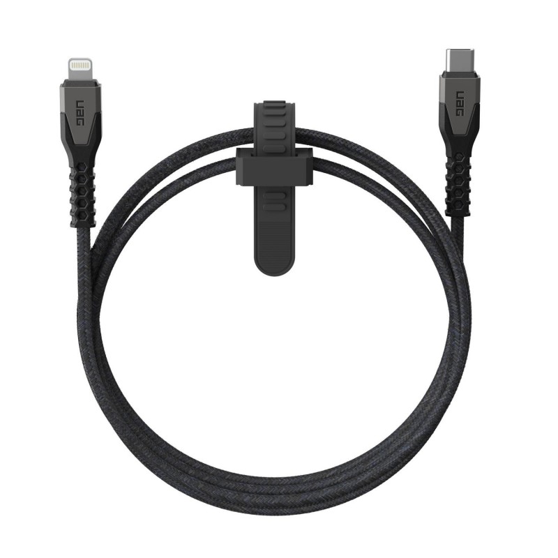 Cabo USB-C para Lightning com 1.5m, com interior reforçado em kevlar, testado para suportar 50.000 movimentos de torção. Tem fita de arrumação integrada. É recomendado para carregamento e sincronização de iPad e iPhone.*natal0040*