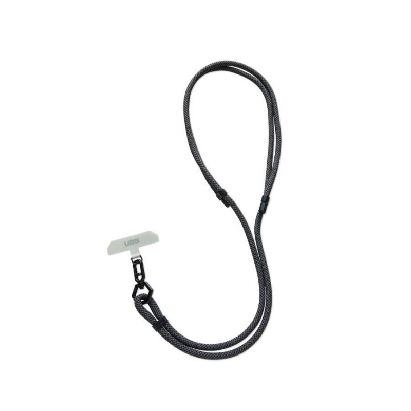 Fita para usar uma capa UAG a tiracolo ou ao pescoço, em polyester de 7mm espessura e expansível até 1.60m. Tem uma patilha que encaixa na capa, e um mosquetão rotativo para retirar facilmente.*natal0040*