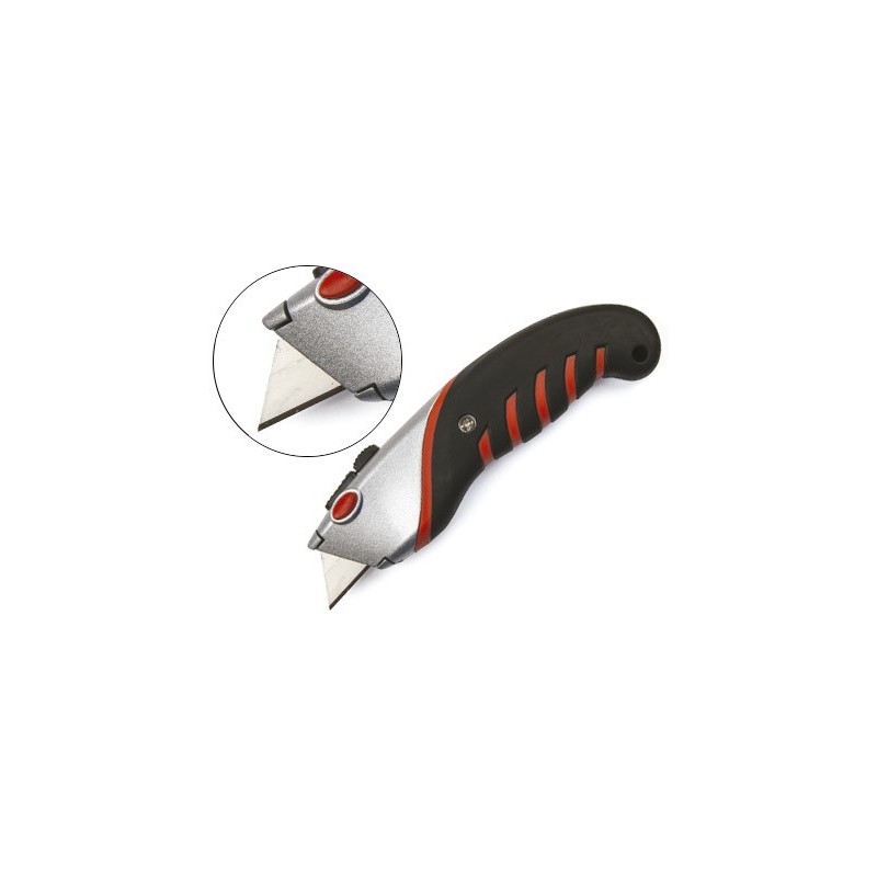 para uma maior comodidade de uso. Cor preto, cinza e vermelho. Lâmina de